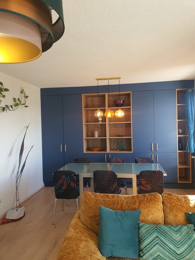 Le nouvel agencement des espaces a permis d’ajouter un grand nombre de rangements dans cet appartement et une décoration plus épurée qui reste chaleureuse.