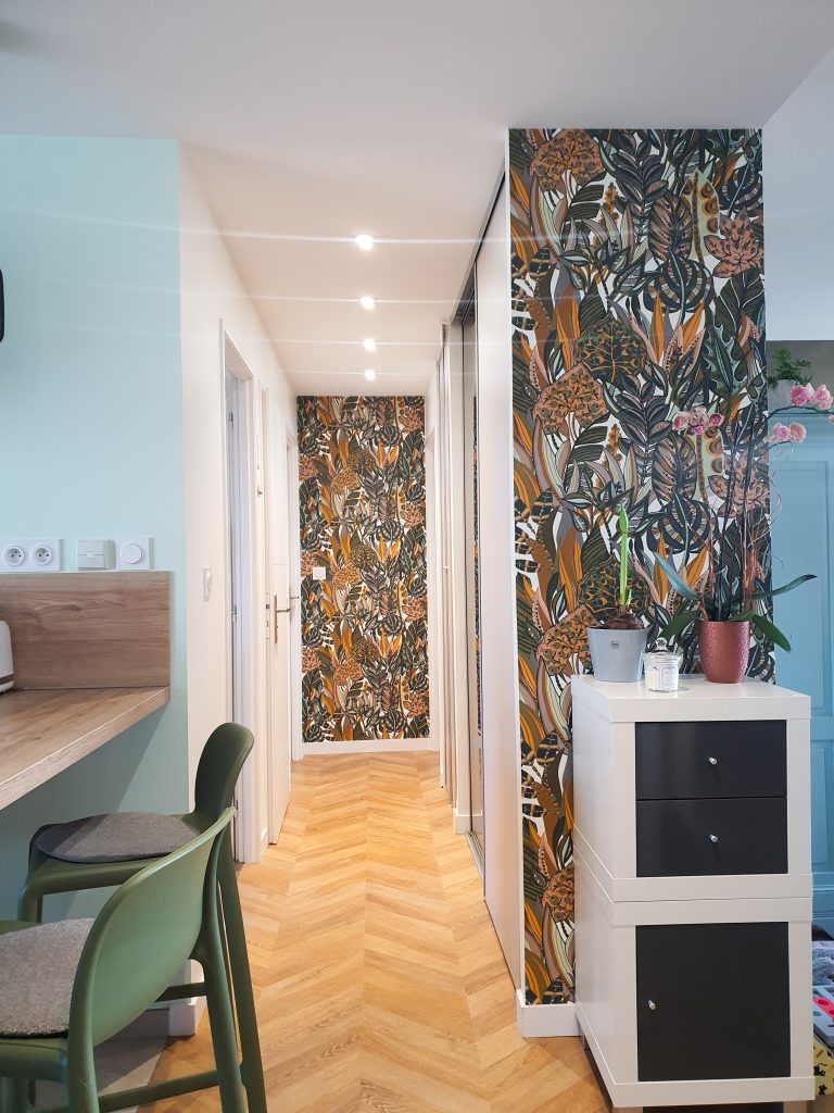 Repenser l’agencement total de cet appartement a permis de créer cette entrée désormais spacieuse et ouverte sur la pièce de vie et la cuisine.